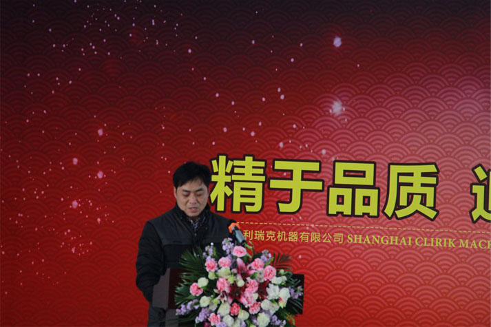 此圖為上海科利瑞克機(jī)器有限公司財(cái)務(wù)部總經(jīng)理?xiàng)钊邪l(fā)表講話